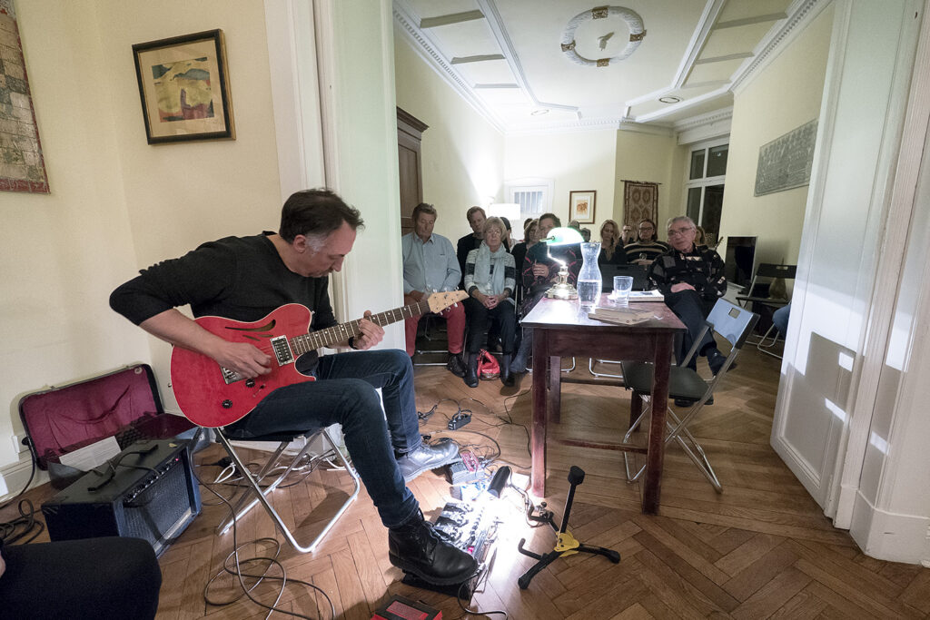 Am kommenden Sonnabend (15.11.2025) bin ich auch wieder dabei, und es wird eine ganz besondere Veranstaltung: Autorin ist diesmal wieder Annett Gröschner mit ihrem aktuellen Roman „Schwebende Lasten“. Das allererste Mal war ich im Oktober 2017 im Salon, auch als Umrahmung für eine Lesung ebenfalls mit Annett Gröschner. Damals habe ich solo mit E-Gitarre, Loops und Effekten improvisiert, und Ariane hat mich gebeten, doch auch dieses Mal so mitzutun. Es schließt sich also ein Kreis – ich freue mich riesig und bin sehr gespannt!